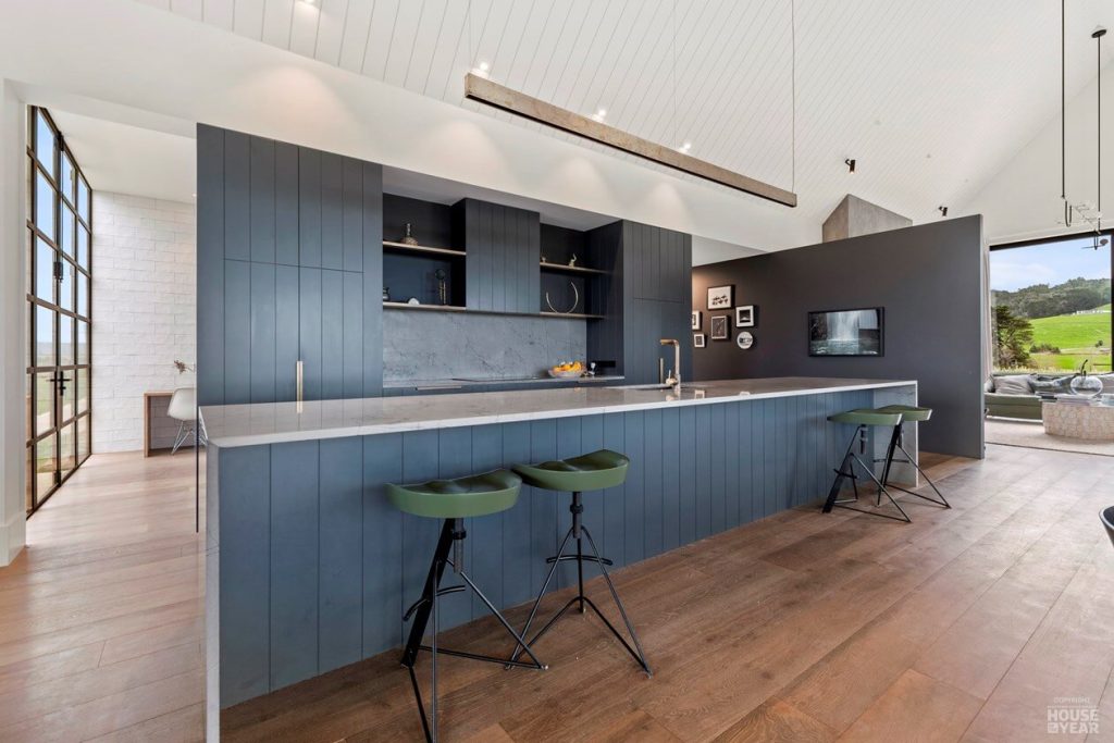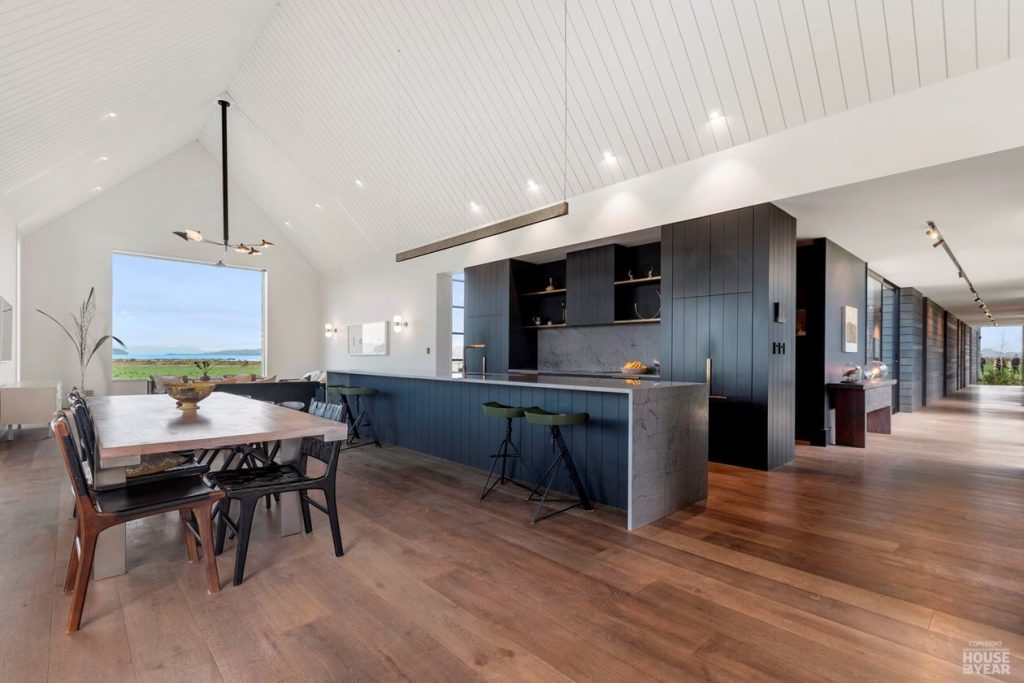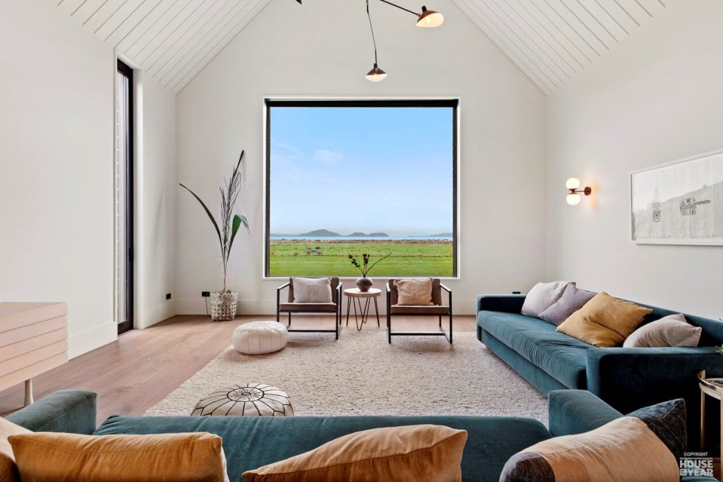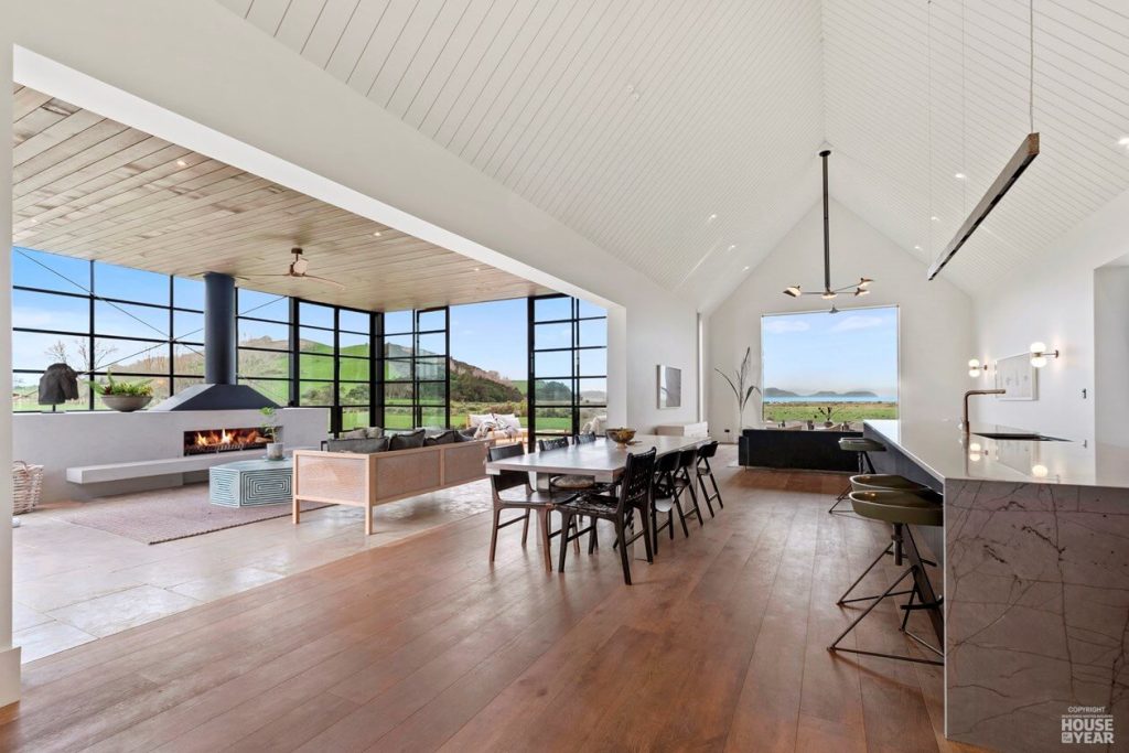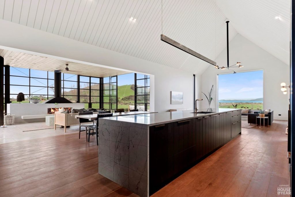 Visitors to this award‑winning retreat are greeted by a 2m cedar pivot door and, beyond it, full‑height steel joinery, cedar ceilings and a sculptural fireplace. Our role was to supply GIB® Boards, GIB® fixing and GIB® stopping, delivering perfectly flat walls and ceilings that let the architecture shine, from the sharp cedar‑clad lines and soaring 6.5m sarked volumes to the elegant DBJ kitchen with brass detailing and a quartzite benchtop. Seamless transitions were essential between morning and evening living spaces, the scullery, and the serene ensuite lined with pistachio limestone and aged brass.